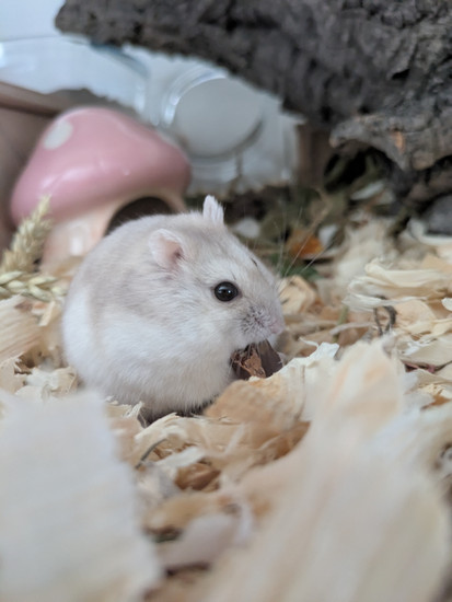 Cédé par une animalerie pour problème neurologique et récupéré par L'Arche de Jaheka Mushroom est le frère de Mochi.